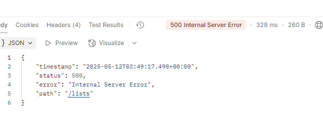 ※ 해당 ID로 요청을 보냈을 때, 다음과 같은 오류 발생: